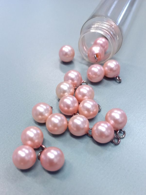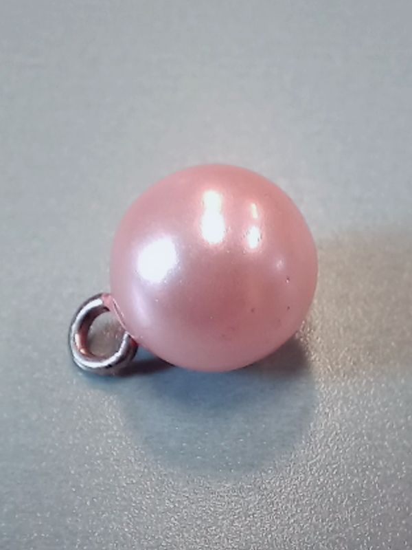 Rózsaszínű, műanyag gyöngygomb fém füllel. Átmérő: 9 mm