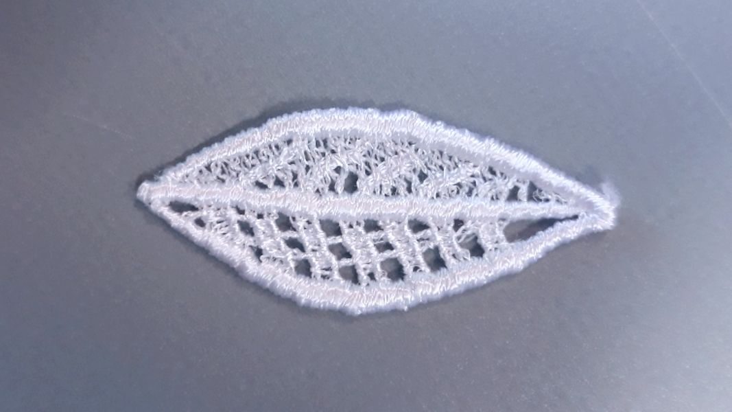 Fehér színű légcsipke levél. Átmérő: 5cm