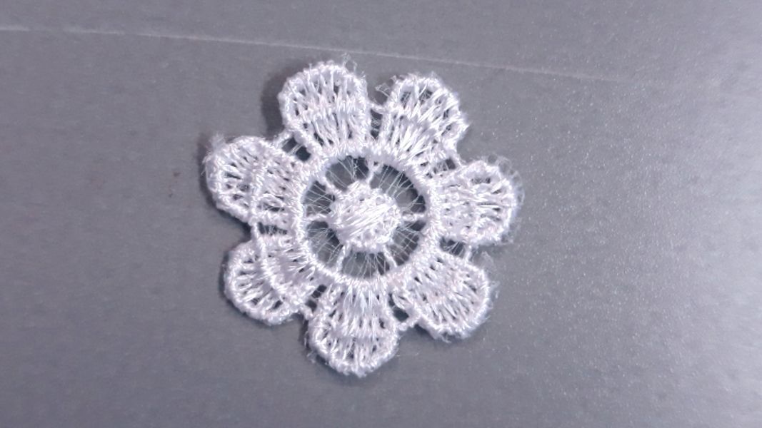 Fehér színű légcsipke virág. Átmérő: 2,5cm