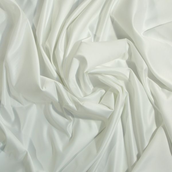 Törtfehér színű, 150 cm széles, matt szatén anyag.