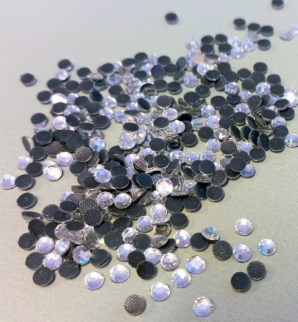 Ezüst színű, felvasalható, kerek formájú kristály. Mérete : 3mm